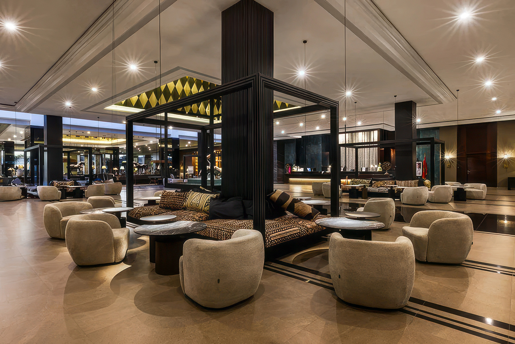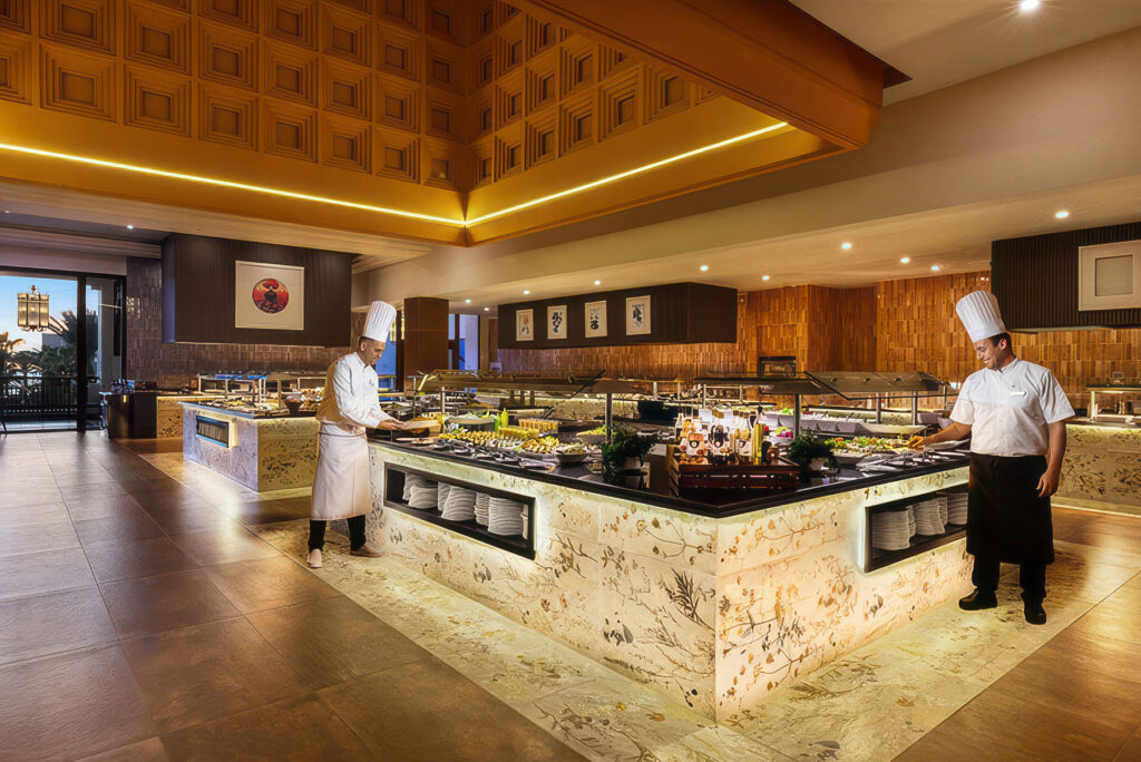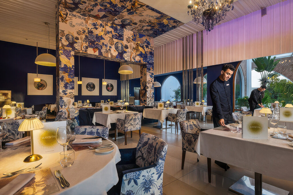 Ruokailu on olennainen osa hotellielämystä: tarjolla on kansainvälisiä, marokkolaisia ja fuusiokeittiön makuja, ja palveluita täydentävät useat baarit. Myös golfarin näkökulmasta sijainti toimii hyvin, sillä hotellilta on vartin matka sekä Soleiliin että Dunesiin.
