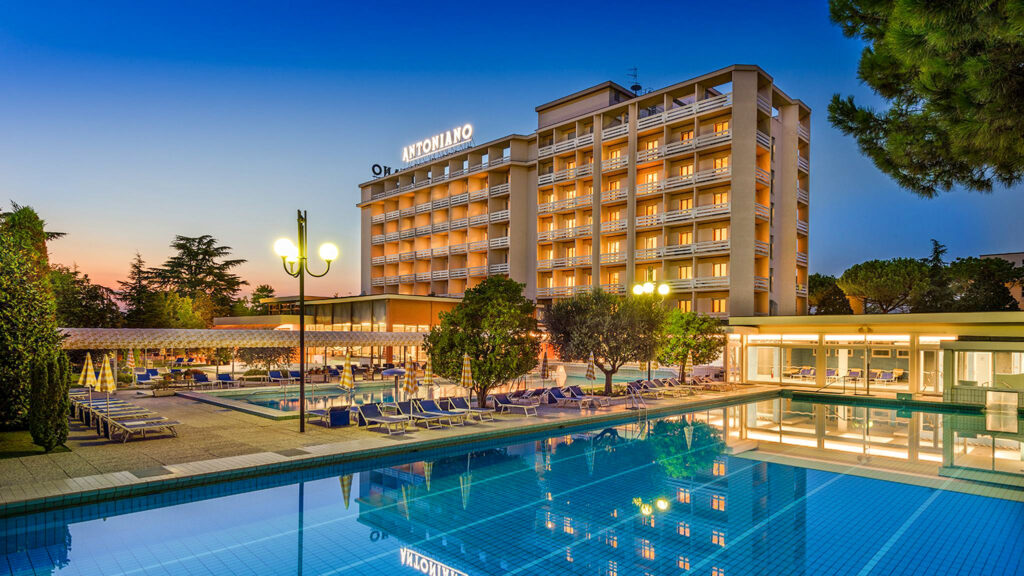 Hotelli Terme Antoniano sijaitsee Montegrotto Termessä, aivan Abano Termen kylpyläkaupungin naapurissa. Alueet muodostavat yhdessä yhden Italian tunnetuimmista spa-alueista. Hotellin läheltä löytyy peruspalvelut Montegrotton puolelta, ja laajempi ravintola- ja ostostarjonta on vain lyhyen matkan päässä Abano Termen keskustassa.